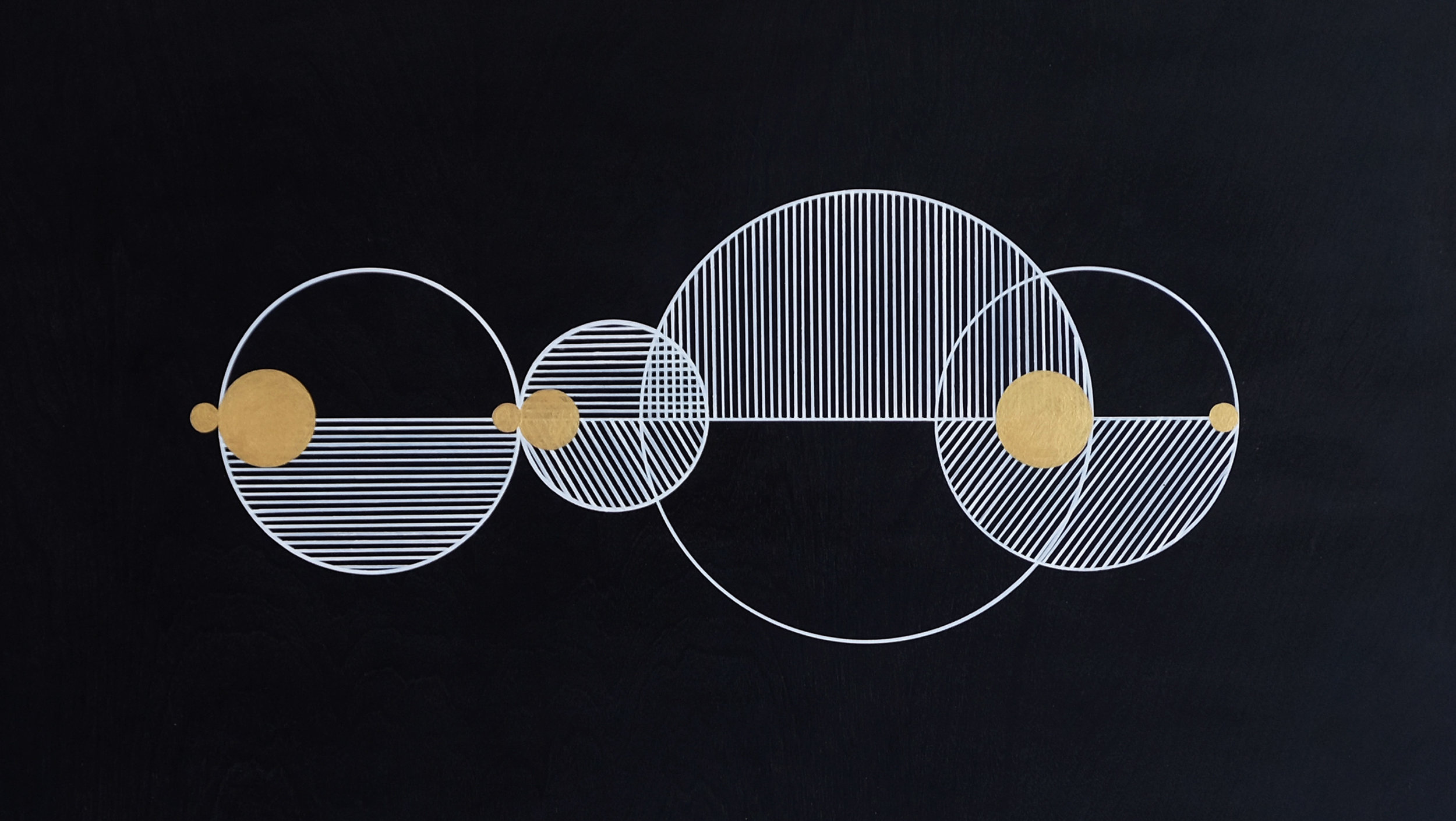 A commissioned wooden panel made with acrylic and ink for the Cronin's residence.